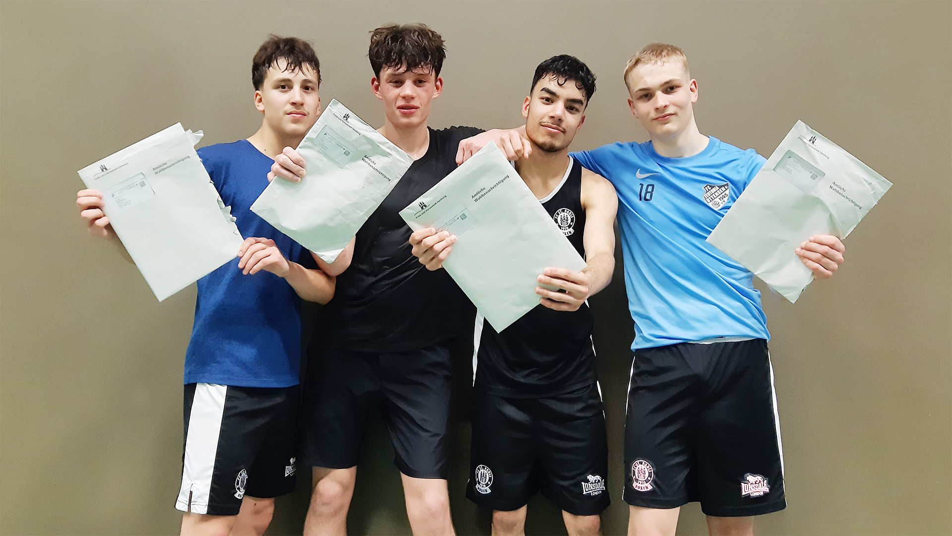 19201080-fc-st-pauli-boxen-wahlaufruf-erstwaehler-europawahl-2024 Erstwähler in der Boxabteilung des FC St. Pauli mit ihren Wahlbenachrichtigungen: Motiviert, bei der Europawahl ihre Stimme abzugeben